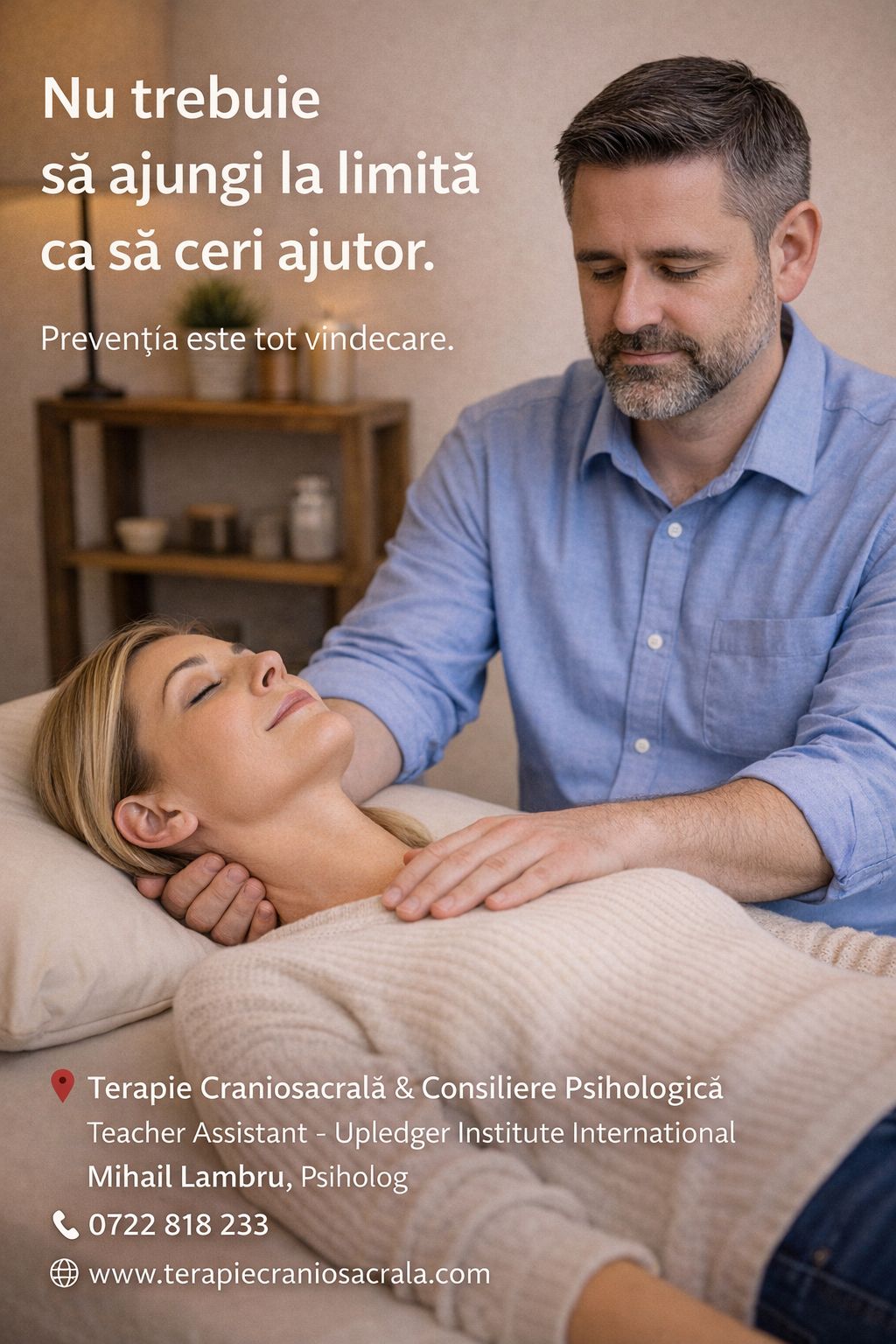 A cere ajutor nu este un semn de slăbiciune. Este un semn de inteligență emoțională și prevenție. În Terapia Craniosacrală lucrăm exact aici: în zona în care stresul încă nu a devenit blocaj major, dar corpul deja cere reglare. Dacă simți că "nu e ceva grav, dar nici nu e bine", acela este momentul potrivit.